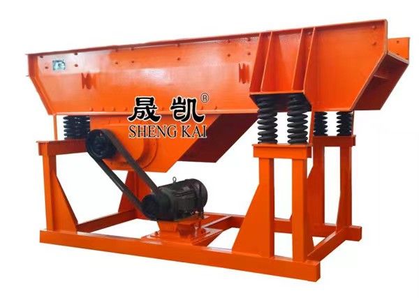 振動(dòng)給料機(jī)又稱振動(dòng)喂料機(jī),振動(dòng)給料機(jī)在生產(chǎn)流程中,可把塊狀、顆粒狀物料從貯料倉中均勻、定時(shí)、連續(xù)地給到受料裝置中去,在砂石生產(chǎn)線中可為破碎機(jī)械連續(xù)均勻地喂料,并對(duì)物料進(jìn)行粗篩分,振動(dòng)給料機(jī)是利用振動(dòng)器中的偏心塊旋轉(zhuǎn)產(chǎn)生離心力,使篩廂、振動(dòng)器等可動(dòng)部分作強(qiáng)制的連續(xù)的圓或近似圓的運(yùn)動(dòng)。振動(dòng)給料機(jī)是由給料槽體、激振器、彈簧支座、傳動(dòng)裝置等組成。槽體振動(dòng)給料的振動(dòng)源是激振器,激振器是由兩根偏心軸(主、被動(dòng))和齒輪副組成,由電動(dòng)機(jī)通過三角帶驅(qū)動(dòng)主動(dòng)軸,再由主動(dòng)軸上齒輪嚙合被動(dòng)軸轉(zhuǎn)動(dòng),主、被動(dòng)軸同時(shí)反向旋轉(zhuǎn),使槽體振動(dòng),使物料連續(xù)不斷流動(dòng),達(dá)到輸送物料的目的。廣泛用于冶金、煤礦、選礦、建材、化工、磨料等行業(yè)的破碎、篩分聯(lián)合設(shè)備中。